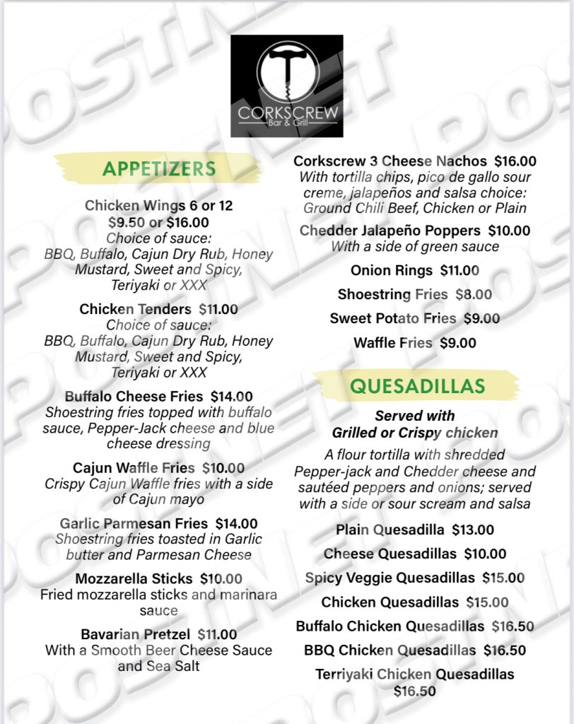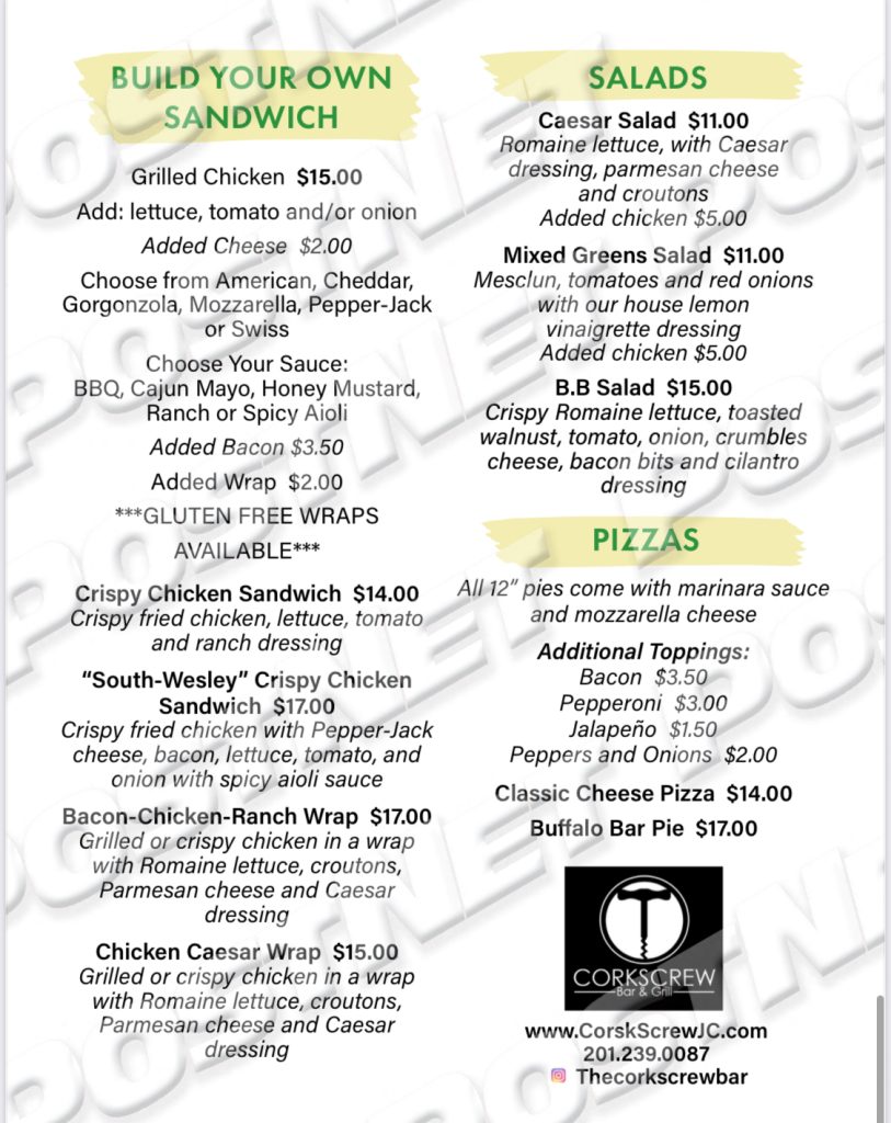 Full Menu | Corkscrew Bar & Grill in Jersey City